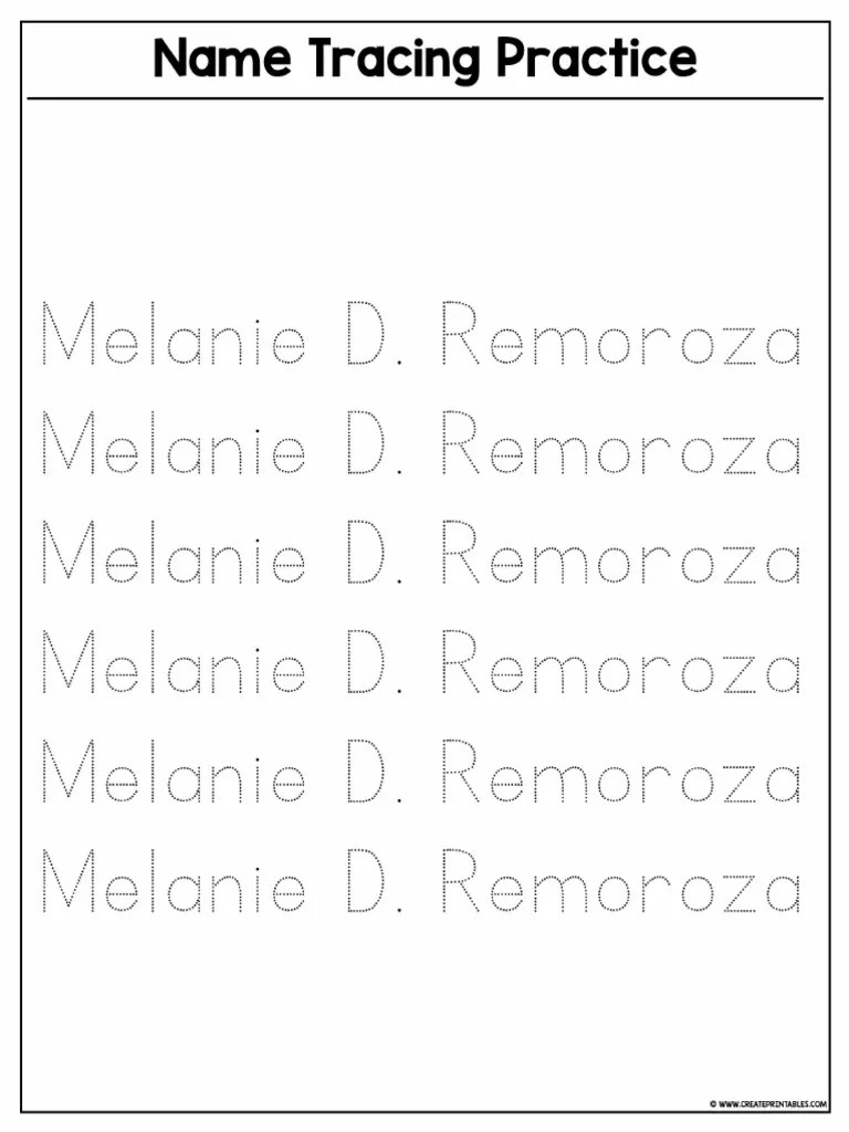 Create Printables.com Name Tracing - Web this name tracing & writing practice booklet has it all; Web these free name tracing sheets for preschool live perfect for developing those beginner letter skills in kids. Web how to create name tracing worksheets? Creating your own name tracing worksheet is pretty straight forward with this name tracing worksheet maker. Tracing, coloring, letter sounds, letter writing, reading, and more. Web our name tracing generator lets you choose from two great fonts: Name tracing sheets, perfect for preschool name tracing worksheets and name learning activities with optional font selection,. Web below is my full collection of printable and free name tracing worksheets, covering the entire alphabet from a to z.