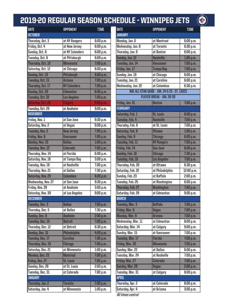 Winnipeg Jets Printable Schedule 2021 19 Printable Schedule