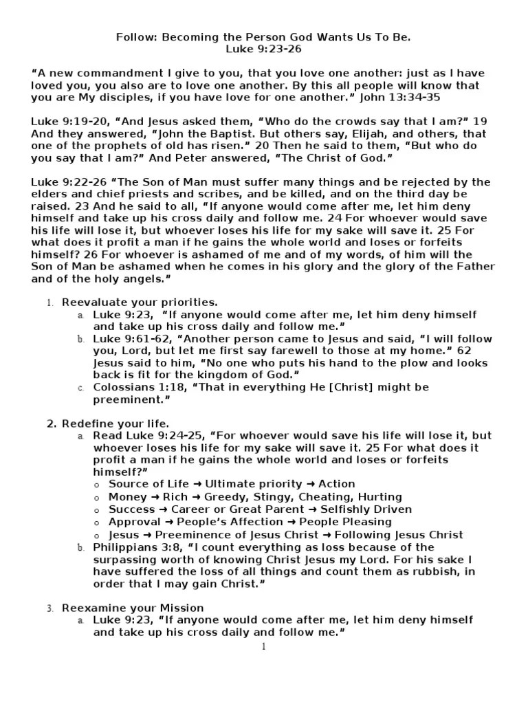 40 Days of Passion Follow Luke 9 2326 Sermon Outline John The