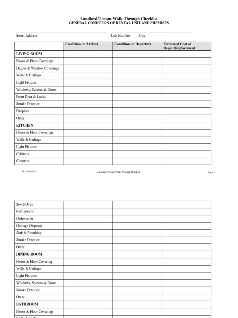 Rental Walk Through Checklist Template