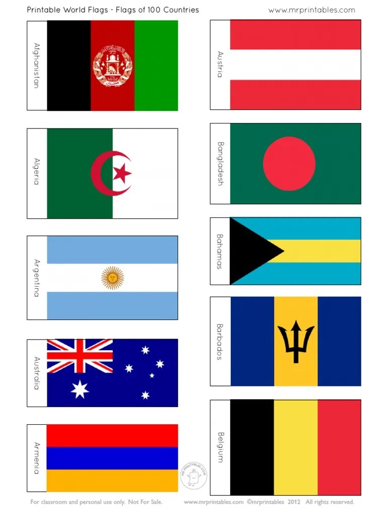 Web free printable world flags, great for coloring activity and learning about world countries at school. Web get your free (for limited time) flags of the world printable worksheets. Each flag is available in color and outline versions. Country flags available to free download in a single. This site offers 494 free that you can download and print. Web flag graphics and printables. To make watching the olympics on tv at home more festive and exciting, for a world travel themed party or. Web printable flags to color! Web flags of the world. Here we have all the nations flag from around the world ready for print and to colorize. Print your flags with your inkjet or. Web download free national flags from countries around the world including images in gif, jpg, and png formats, pdf printouts, and. Download all country flags of the world for free. High five for taking steps for great geography fun with your.